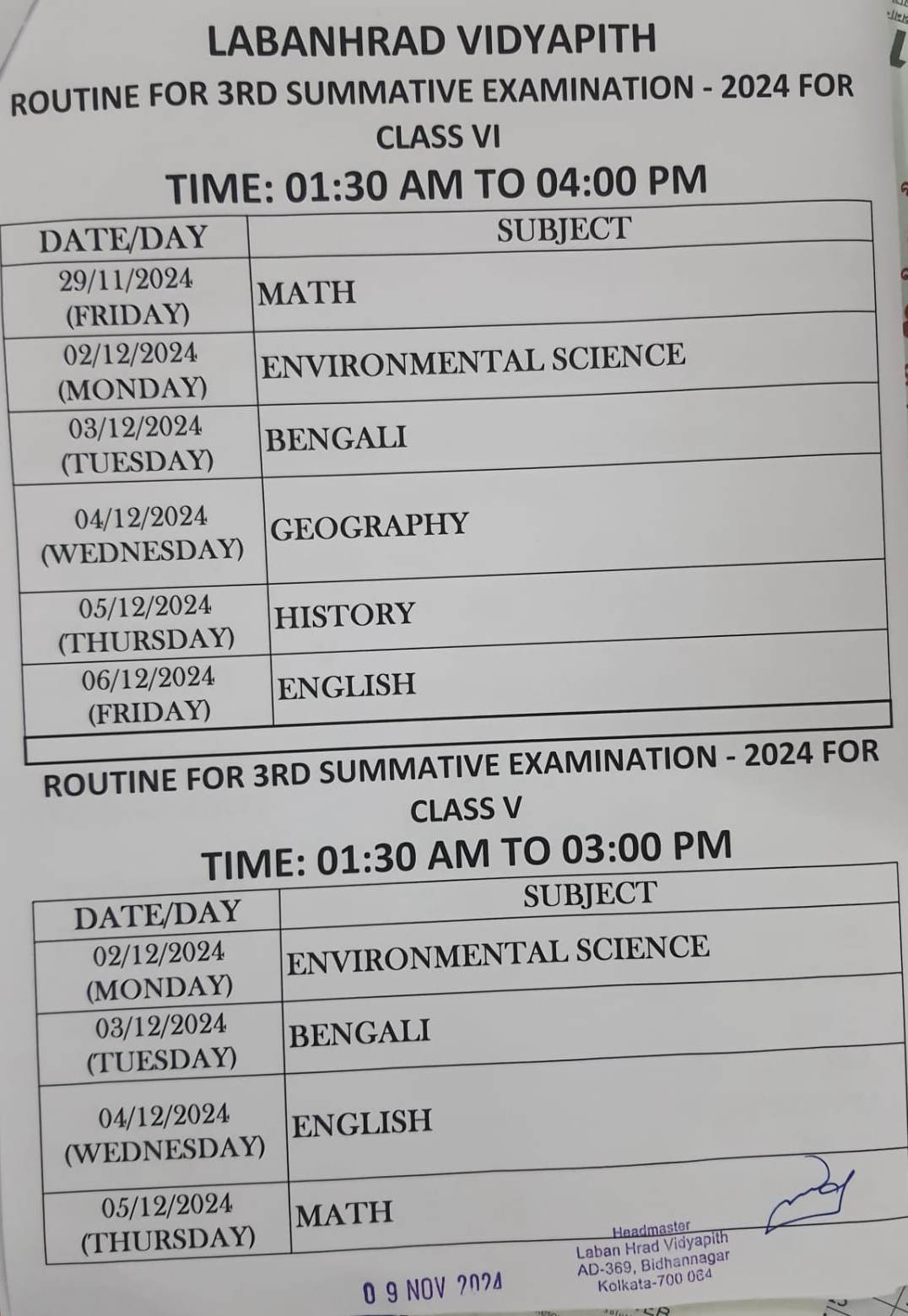 3RD SUMMATIVE EXAM. ROUTINE FOR CLASS V TO VI 2024.CLICK FOR DETAILS.