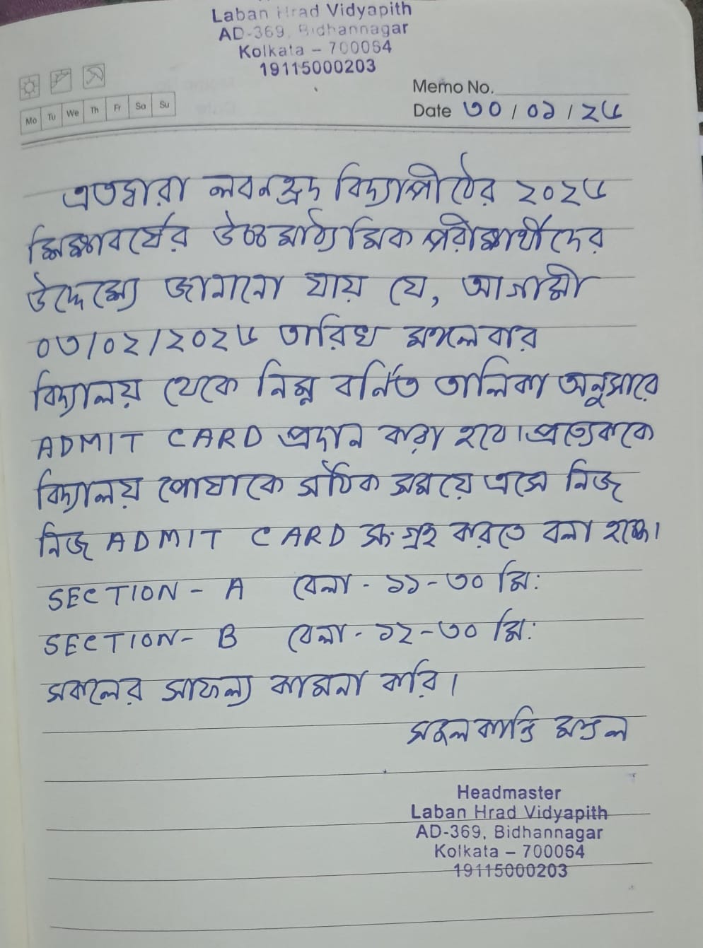 ADMIT CARD DISTRIBUTION FOR HS CANDIDATES 2026. CLICK FOR DETAILS.