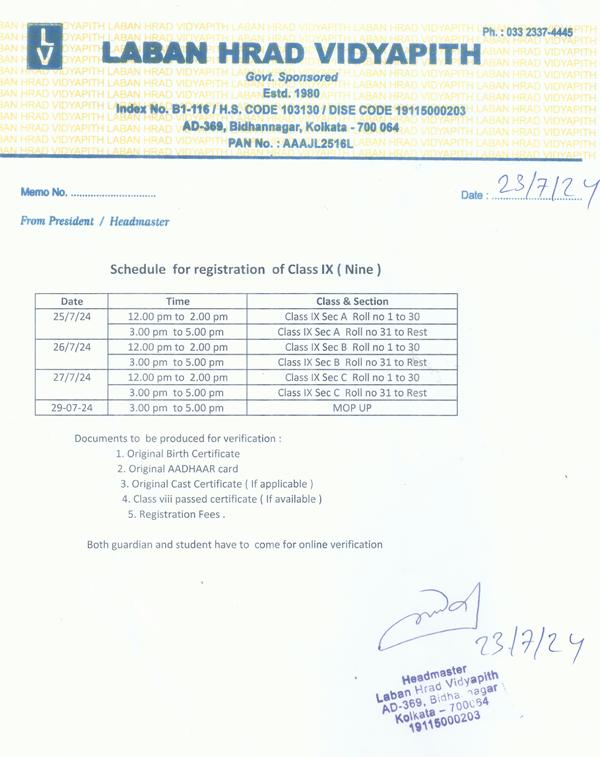 CLASS IX STUDENTS' REGISTRATION 2024. CLICK FOR DETAILS