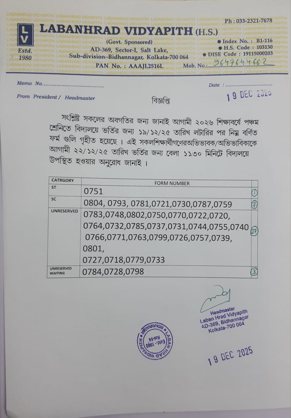 CLASS V ADMISSION 2026. CLICK FOR DETAILS