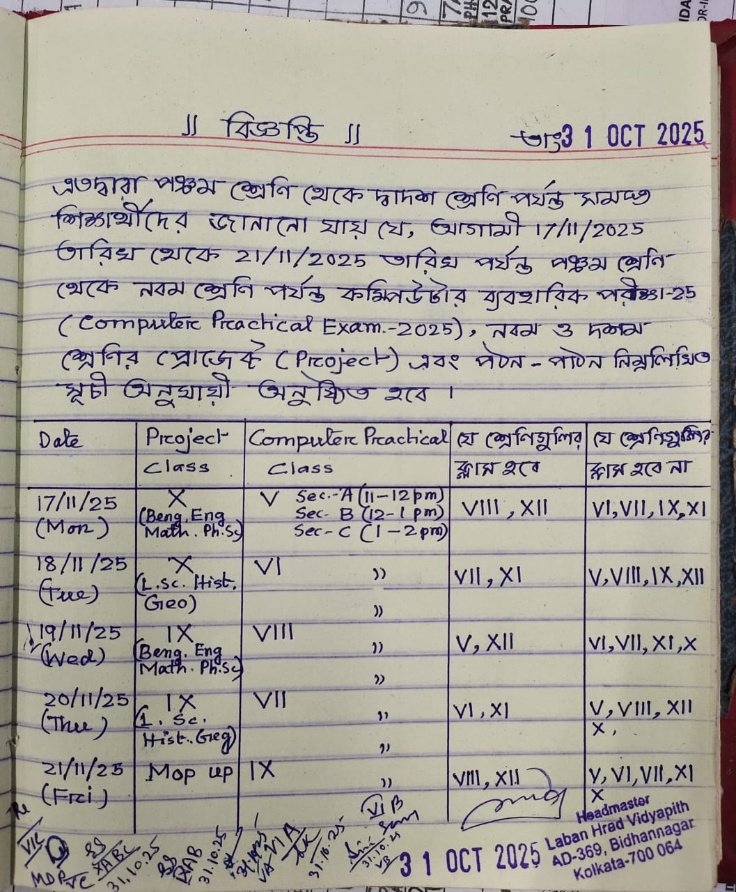 Computer Practical Exam. 2025 for Class V to IX and Class IX & X Project and XI, XII Class routine. Click for details.