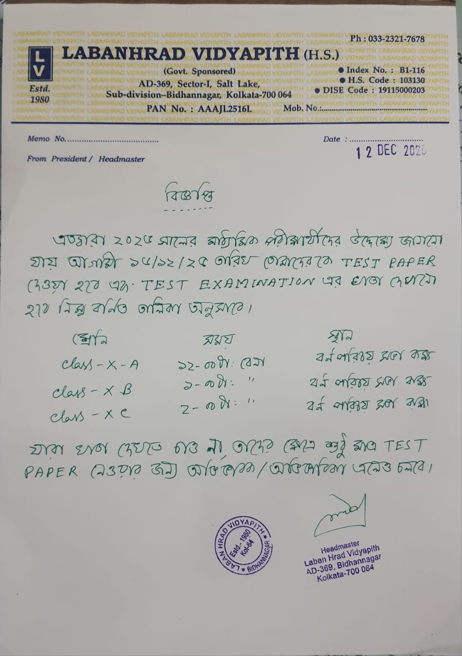 Test Paper distribution and showing answershet of test exam. to Madhyamik candidates 2026. Click for details